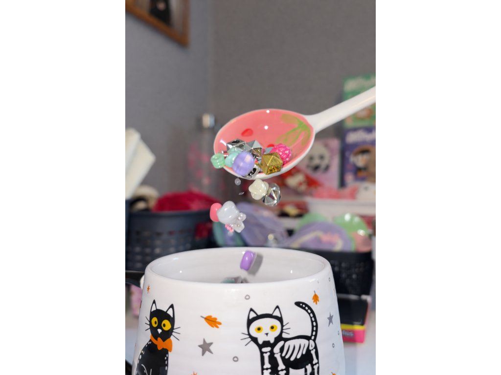 Hledej barvy: Každý korálek na lžíci znamená jednu věc. Podaří se ti ulovit ten, který patří k našim legendárním cenám, jako je mini skládačka, trendy DIY samolepky nebo stylová kabelka? 🎀